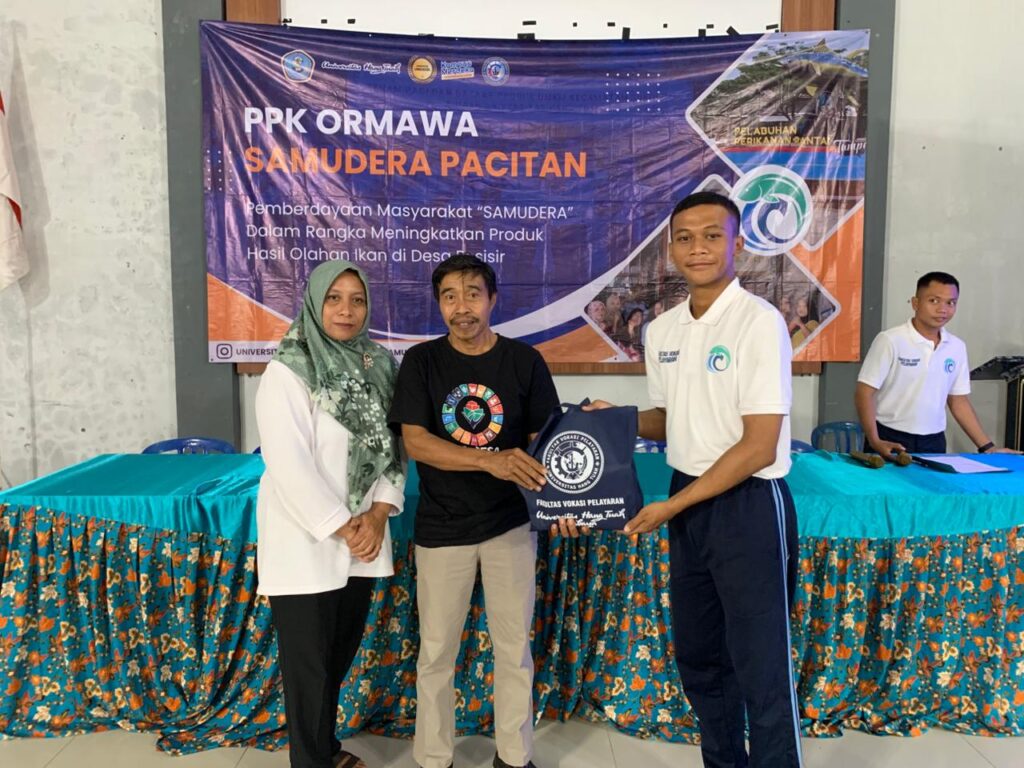 Desa Kembang Pacitan merupakan wilayah pesisir dengan sumber daya ikan yang melimpah, namun masyarakat setempat masih menghadapi keterbatasan dalam pemanfaatan dan pengolahan hasil laut secara optimal. Melihat kondisi tersebut, Organisasi Mahasiswa Batalyon Jala Cendekia yang diketuai oleh Muhammad Faishal Rabbani Pribadi Putra dan Bima Ariz Kurniawan serta dimbimbing langsung oleh Dekan FVP Bapak Djamaldin Malik, S.E., M.AP., M.Tr. Opsla, M.Mar. terpanggil untuk memberikan pendampingan intensif. Mahasiswa berkomitmen membantu masyarakat agar dapat meningkatkan nilai ekonomi hasil tangkapan dan menciptakan peluang usaha berkelanjutan berbasis potensi lokal.