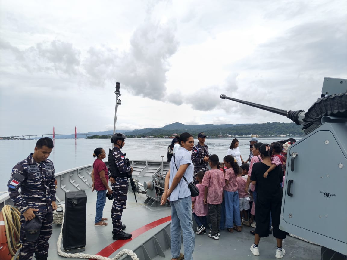 Ambon (26/2/2026). Guna menebarkan dan tanamkan cinta dunia bahari sejak dini, Komando Daerah TNl Angkatan Laut lX (Kodaeral lX) menerima kunjungan edukasi dari siswa Yayasan Heka Leka Ambon ke KRI Posepa – 870 Satuan Kapal Patroli yang sandar di Dermaga Irian Kodaeral IX, Halong, Kota Ambon, Maluku, Kamis (26/2/2026).