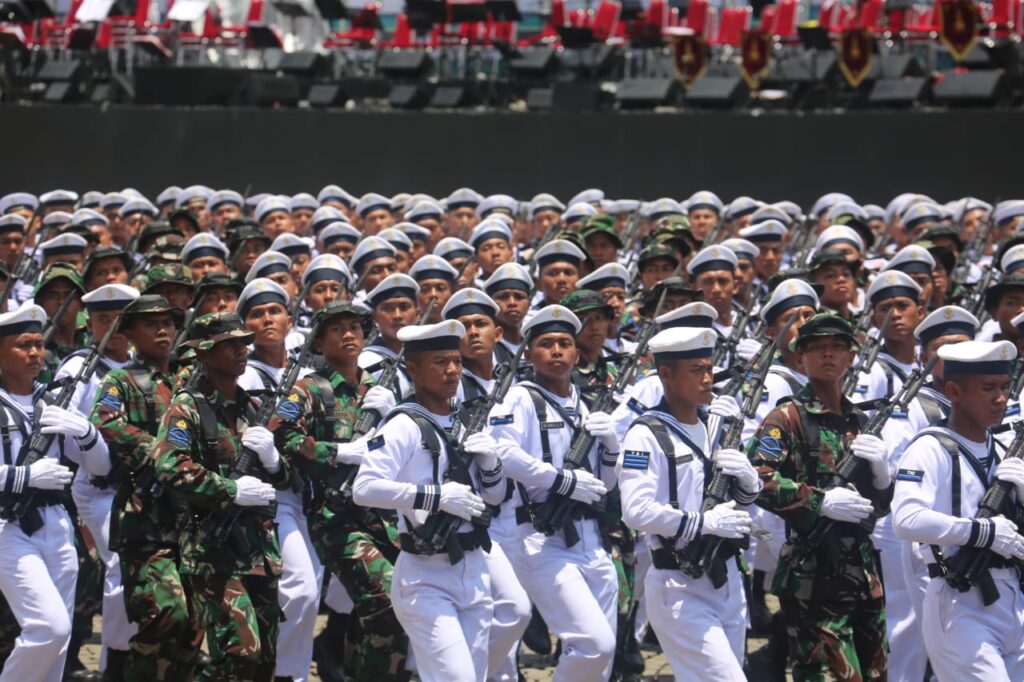 Empat hari menjelang puncak peringatan HUT Ke-80 TNI pada tanggal 5 Oktober 2025 mendatang, semangat prajurit semakin berkobar dalam melaksanakan gladi upacara gabungan di Silang Monumen Nasional (Monas), Jakarta, Rabu (1/10). Ratusan prajurit Koarmada II yang tergabung dalam pasukan upacara terus menunjukkan konsistensi dan dedikasi tinggi dalam setiap tahapan latihan.