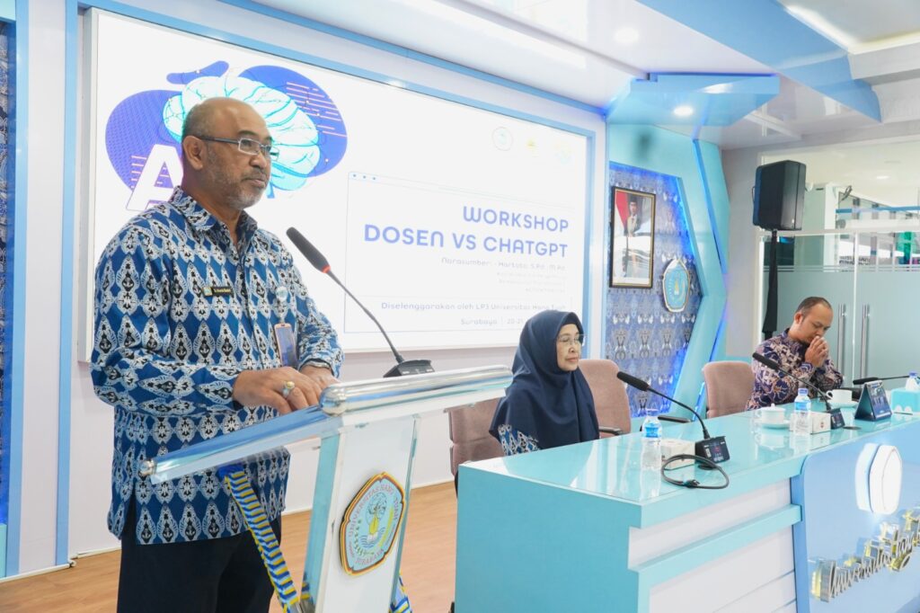 Hal itu disampaikan saat membuka Workshop AI bertajuk “Dosen vs. ChatGPT: Strategi Transformasi Digital dalam Menghadapi Era AI Generatif”, Selasa (20/1/2026), yang digelar di Ruang Seminar Universitas Hang Tuah Lantai 2, Surabaya.