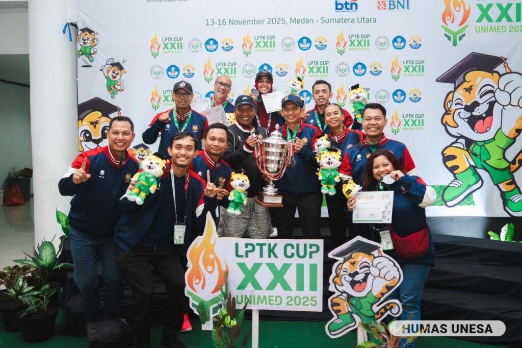NusantaranewsSurabaya, – Universitas Negeri Surabaya (Unesa) kembali mengukuhkan reputasinya sebagai kampus unggulan di bidang olahraga setelah meraih gelar Juara Umum pada ajang LPTK Cup XX 2025 yang berlangsung di Universitas Negeri Medan (Unimed) pada 12–15 November 2025.