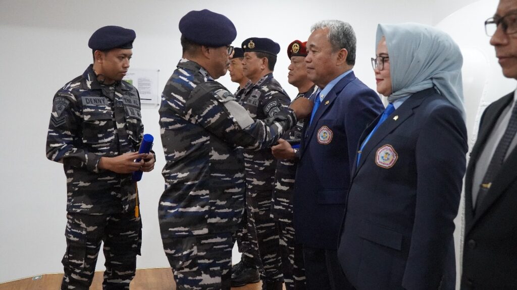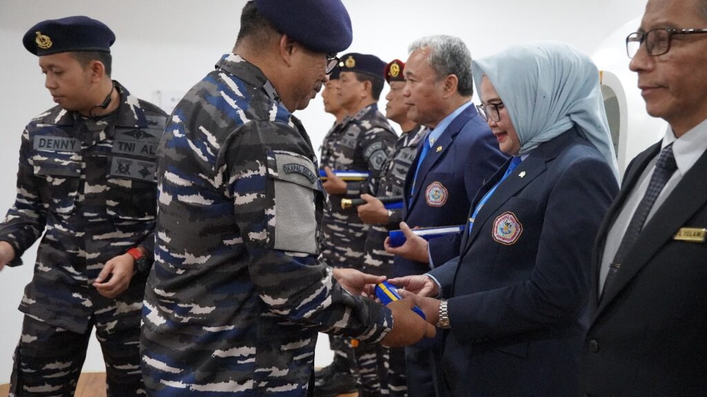 Surabaya, 7 Oktober 2025. Wakil Rektor I Dr. Widyastuti, drg., Sp.Perio. dan Wakil Rektor III Laksamana Pertama (Purn) Dr. Toto Dwijaya Saputra, S.T., M.Si(Han)., M.Tr.Opsla. menerima Brevet Kehormatan Kesehatan Penyelaman dan Hiperbarik yang disematkan langsung oleh Kepala RSPAL dr. Ramelan, Laksma TNI dr. Imam Hidayat, Sp.S., FINA., bertempat di Lakesla, Surabaya, Selasa (7/10). Penganugerahan brevet ini menjadi salah satu rangkaian kegiatan dalam memperingati Hari Kesehatan TNI Angkatan Laut Tahun 2025.